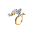 Elegance není nikdy přehlížena, když nosíte tento prsten z 18kt růžového a bílého zlata s černými diamanty a granátem green, který je dokonalým důkazem, že skutečná krása může být jednoduchá a zářící zároveň. Šperk je součástí kolekce Animals.