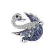 Prsten s černými a bílými diamanty a safíry Magical Swan