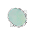 Exkluzivní prsten v 14kt bílém zlatě, zdobený nádherným chalcedonem, je mistrovským dílem šperkařského umění. Jeho jedinečný design a neobyčejná krása tyrkysového chalcedonu odhalují skutečnou eleganci. Šperk je součástí kolekce Blossoms.