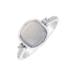 Prsten 18kt bílého zlata s diamanty a chalcedonem symbolizující komunikaci a sebevyjádření. Jeho svůdný třpyt je jako oslava vyjadřování a elegance, ideální pro ty, kteří si cení originality. Šperk je součástí kolekce Blossoms.