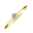 Dokonale propracovaný 14kt zlatý prsten v žluté barvě zdobí zářivý briliant. Na ruce působí velmi jemně a decentně, skvěle se kombinuje s jinými šperky. Potěšte ženu svého života nádherným šperkem k zásnubám, výročí či jiné příležitosti.