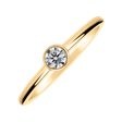 Jemný prsten z bílého, žlutého nebo růžového 14kt zlata. Zajímavě zasazený briliant kulatého brusu je spojením tradičního zásnubního prstýnku s praktičností hladkého tvaru. Šperk je vhodný pro žádost o ruku i jako krásný dárek.
