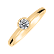 Jemný prsten z bílého, žlutého nebo růžového 14kt zlata. Zajímavě zasazený briliant kulatého brusu je spojením tradičního zásnubního prstýnku s praktičností hladkého tvaru. Šperk je vhodný pro žádost o ruku i jako krásný dárek.