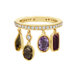 Jemnost a elegance se spojují v tomto 18kt žlutém zlatém prstenu s diamanty a drahokamy, který slaví každé váš gesto. Šperk je součástí kolekce Fantasy.