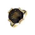 Majestátní prsten z 18kt žlutého a černého zlata, zdobený vícebarevnými diamanty a smoky quartzem, je symbolem odvahy a inovace. Jeho barevný třpyt a odvážný design jsou svědectvím kreativity a luxusu. Šperk je součástí kolekce Fantasy.