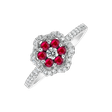 Ponořte se do čistého lesku tohoto 18kt bílého zlatého prstenu s diamanty a rubínem, jenž je dokonalým dokladem, že pravá elegance tkví ve zdánlivě jednoduchých detailech. Šperk je součástí kolekce Mirage.
