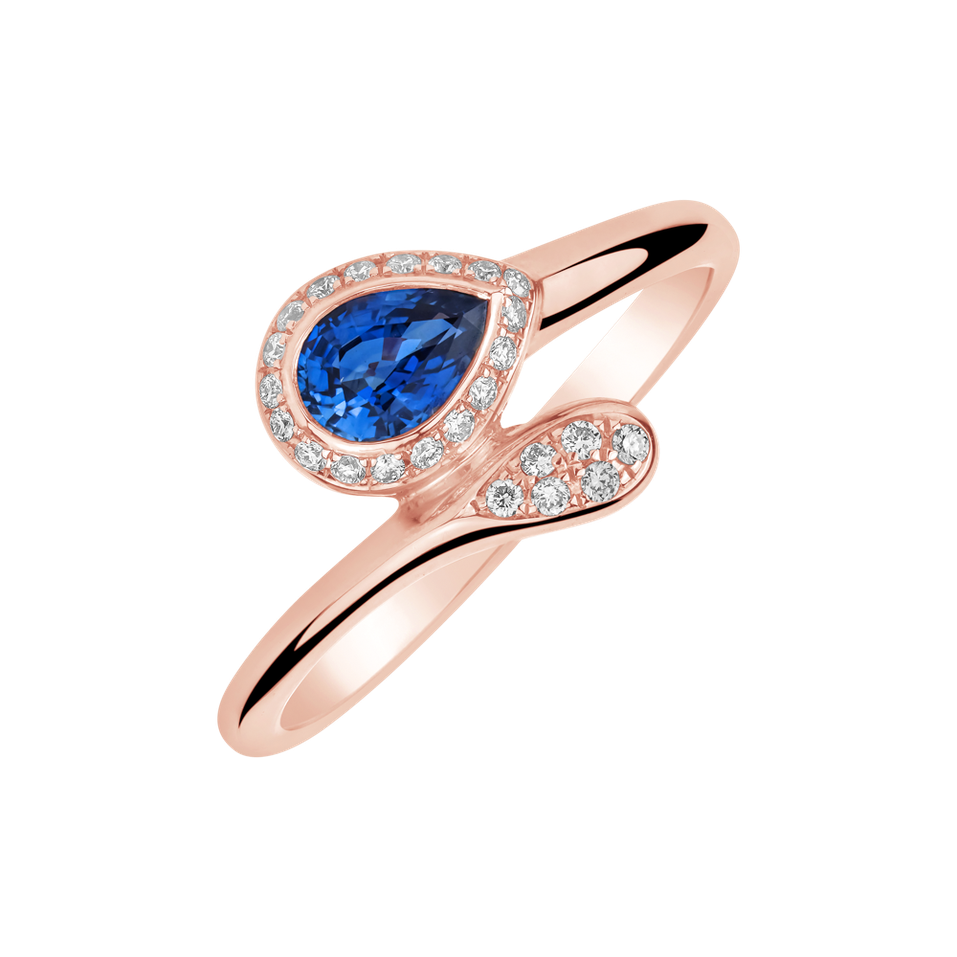 prstenu z růžového zlata. Zářivou barvu drahokamu zvýrazňují precizně broušené