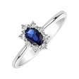 Oválný safír obklopený třpytivými diamanty na jemné zlaté obruči vypadá doslova královsky. Prsten, se kterým se vaše vyvolená bude cítit jako princezna!