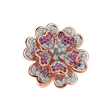 Tento prsten z 18kt růžového a bílého zlata, osazený diamanty a safírem pink, je poctou triumfu a elegance. Každý kámen září jako symbol úspěchu, prestiže a výjimečnosti. Stvořen pro ženu, která si zaslouží to nejlepší. Šperk je součástí kolekce Flowers.