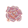Elegantní prsten s 18kt růžovým zlatem zdobené diamanty a safírem pink. Dokonalý doplněk pro každou příležitost k úspěchu. Šperk je součástí kolekce Flowers.