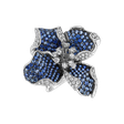 Diamanty, safír a preciznost. Prsten z 18kt bílého a černého zlata s diamanty a safírem je mistrovským dílem ruční práce a ozdobou pro ty, kteří znají hodnotu pravé krásy a síly. Šperk je součástí kolekce Flowers.