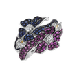 Dejte světu najevo své životní úspěchy. Tento prsten z 18kt bílého, černého a žlutého zlata s diamanty, safírem a safírem pink představuje dokonalost ve formě šperku, který je silným vyjádřením osobního šarmu a nadčasového stylu. Šperk je součástí kolekce Flowers.