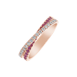 Diamanty, safír a preciznost. Prsten z 18kt růžového zlata s diamanty a safírem pink je mistrovským dílem ruční práce a ozdobou pro ty, kteří znají hodnotu pravé krásy a síly. Šperk je součástí kolekce Essential.
