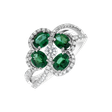 Prsten z 18kt bílého zlata s diamanty, jehož krásu zdůrazňuje nádherný smaragd, je symbolem elegance a nadčasové krásy. Jeho rafinovaný design a zářivost smaragdu přináší pocit luxusu a výjimečnosti. Šperk je součástí kolekce Mirage.
