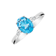 Klasický design zásnubního prstenu v moderním provedení. Oválný centrální topaz je po stranách zdoben dvěma menšími diamanty, což vypadá opravdu úchvatně.