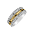 Nádherný prsten z 18kt bílého a žlutého zlata osvětlený září diamantů je dokonalým vyjádřením lásky a závazku. Jeho elegantní design je ideální pro zásnubní nebo svatební příležitost. Šperk je součástí kolekce Charming.