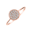 Tento prsten vyroben z 14kt růžového zlata, zdobený diamanty, je dokonalým symbolem jemné elegance. Jeho světelný třpyt a souhra barev dodávají každému dni kapku luxusu. Šperk je součástí kolekce Charming.