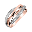 Luxusní prsten ze 14kt bílého, růžového nebo žlutého zlata s třpitivými brilianty a lesklými liniemi zlata, které se vzájemně proplétají, je doslova dechberoucí. Udělejte radost sobě nebo svým blízkým přepychovým dárkem.