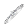 Luxusní zásnubní prsten, který jí vyrazí dech. Jemná zlatá obroučka s centrálním briliantem a menšími postranními brilianty je jedinečný šperk pro lásku vašeho života. Bílé 14kt zlato, diamanty, nadčasový design a nezaměnitelný lesk tvoří z tohoto prstýnku opravdu výjimečnou volbu.
