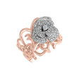 Tento prsten z 14kt růžového a bílého zlata s diamanty je dokonalým doplňkem pro každou příležitost. Jeho elegantní design a jemný lesk připomínají svítání nad horizontem, symbolizující nové začátky a nekonečné možnosti pro ty, kteří vstupují na novou cestu. Šperk je součástí kolekce Flowers.
