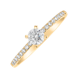 Vyznejte svou lásku nádherným 14kt zlatým prstenem s pravými diamanty. Centrální kulatý briliant s menšími postranními je oblíbeným modelem luxusního zásnubního prstenu.