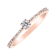 Briliantový zásnubní prsten z růžového zlata je výjimečný šperk, který svým třpytem zaujme na první pohled. Obroučka je posetá drobnými diamanty a uprostřed vyniká větší briliant.