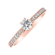 Luxusní diamantový prsten, který bude mluvit za vás! Tento nádherný šperk z růžového 14kt zlata je po stranách vykládaný brilianty a uprostřed je jeden dominantní diamant. Je vhodný jako zásnubní prsten i jako dárek. Jednoduše výjimečný šperk pro výjimečnou ženu.