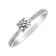 Luxusní zásnubní prsten, který jí vyrazí dech. Jemná zlatá obroučka s centrálním briliantem a menšími postranními brilianty je jedinečný šperk pro lásku vašeho života. Bílé 14kt zlato, diamanty, nadčasový design a nezaměnitelný lesk tvoří z tohoto prstýnku opravdu výjimečnou volbu.
