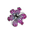 Elegantní prsten z 18kt bílého a černého zlata s diamantem, rubínem a safírem multicolor, který vyzařuje jedinečnou noblesu a vytříbený vkus. Tento prsten je dokonalým spojením elegance a jemného lesku, které z něj činí výrazný doplněk pro každou příležitost. Šperk je součástí kolekce Flowers.