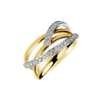 Nádherný prsten z 18kt žlutého a bílého zlata osvětlený září diamantů je dokonalým vyjádřením lásky a závazku. Jeho elegantní design je ideální pro zásnubní nebo svatební příležitost. Šperk je součástí kolekce Essential.