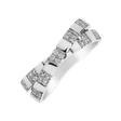 Výjimečný prsten ze 14kt bílého zlata se dvěma zkříženými obroučkami má minimalistický čtvercový tvar. Vsazené diamanty dodávájí prstenu luxusní nádech a okouzlující třpitivý design.