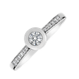 Elegantní diamantový prsten z bílého zlata je skvělou volbou pro žádost o ruku, ale také nádherným dárkem. Minimalistický okrouhlý design centrálně zasazeného kamene je zdůrazněn třpytivými brilianty po stranách.