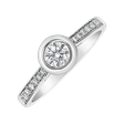Elegantní diamantový prsten z bílého zlata je skvělou volbou pro žádost o ruku, ale také nádherným dárkem. Minimalistický okrouhlý design centrálně zasazeného kamene je zdůrazněn třpytivými brilianty po stranách.