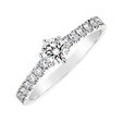 Luxusní vyznání lásky pouze s úchvatným diamantovým prstenem. Vyberte si například tento třpytivý model od ALOve z bílého zlata s centrálním diamantem různých velikostí a menšími brilianty po stranách.