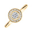 Nádherný 14kt zlatý prsten s brilianty je vyrobený v halo stylu. Centrální diamant obklopený menšími je oblíbený design pro zásnubní prsteny. Tento třpytivý kousek v žlutém zlatě je opravdu výjimečný šperk, který si zamilujete.