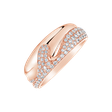 Nádherný prsten z 18kt růžového zlata osvětlený září diamantů je dokonalým vyjádřením lásky a závazku. Jeho elegantní design je ideální pro zásnubní nebo svatební příležitost. Šperk je součástí kolekce Essential.