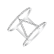 Luxusní prsten vyrobený z bílého 14kt zlata tvoří dva kroužky spojené tvarem do písmena V, který zdobí třpytivé diamanty. Prsten působí díky svému dizajnu výrazně a zaručeně jej nikdo nepřehlédne.