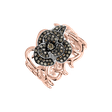 Tento prsten z 14kt růžového, bílého a černého zlata s hnědými diamanty je dokonalým doplňkem pro každou příležitost. Jeho elegantní design a jemný lesk připomínají svítání nad horizontem, symbolizující nové začátky a nekonečné možnosti pro ty, kteří vstupují na novou cestu. Šperk je součástí kolekce Flowers.