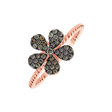 S tímto 14kt růžovým prstenem s kombinací růžového a černého zlata a hnědými diamanty záříte elegancí a rafinovaností. Každý diamant je pečlivě vsazen, aby zdůraznil krásu tohoto prsten. Ideální volba pro odvážnou ženu s vkusem. Šperk je součástí kolekce Flowers.