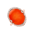 Obklopený aurou luxusu, tento prsten z 14kt růžového zlata, zdobený diamanty a karneolem, je skvostem, který odráží hloubku a sofistikovanost. Jeho srdce je jako okno do světa nekonečné elegance. Šperk je součástí kolekce Blossoms.