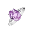 Klasický design zásnubního prstenu v moderním provedení. Oválný centrální kunzit je po stranách zdoben dvěma menšími diamanty, což vypadá opravdu úchvatně.