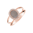 Tento prsten, mistrovsky vyrobený z lesklého 18kt růžového zlata, je symbolem sofistikovanosti a nekonečné elegance. Jeho jemné diamanty a perly třpytící se jako kapky rosy vyzařují luxus a výjimečnost. Zlatý šperk je dokonalým doplňkem každého úspěchu. Šperk je součástí kolekce Fantasy.