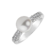 Odvaha a něžnost vyzařují z tohoto prstenu z 14kt bílého zlata s diamanty a sladkovodní bílou perlou, která ukrývá příběhy nefalšované ženskosti. Šperk je součástí kolekce Ocean & River.