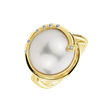 Elegantní prsten s 14kt žlutým zlatem, diamanty a mořskou bílou perlou. Dokonalý doplněk pro každou příležitost k úspěchu. Šperk je součástí kolekce Ocean & River.