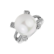 Prsten z 18kt bílého zlata s diamanty a mořskou bílou perlou, který je jako symfonie světla a elegance. Jeho nádherný design představuje cestu k úspěchu, plnou krásy a jemných tónů. Šperk je součástí kolekce Ocean & River.