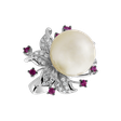 Skvěle vyladěný prsten z 18kt bílého zlata zdobený brilantními diamanty, mořskou perlou a safírem pink je slavnostním vyjádřením hloubky vašich citů a honosným znamením vašeho vkusu. Šperk je součástí kolekce Ocean & River.