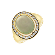 Prsten 18kt žlutého zlata s diamanty a prehnitem symbolizující klid a harmonii. Jeho svůdný třpyt je jako oslava rovnováhy a stylu, ideální pro ty, kteří si cení přírodní krásy. Šperk je součástí kolekce Blossoms.