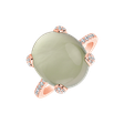 Jemnost a eleganci v sobě snoubí tento prsten z 14kt růžového zlata s diamanty a prehnitem. Jeho subtilní design je dokonalým doplňkem pro každou významnou příležitost, dodává šmrnc a zároveň zdůrazňuje jemnou krásu nositelky. Šperk je součástí kolekce Blossoms.