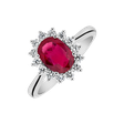 Prsten 14kt bílého zlata s diamanty a rubínem je jako líbezná píseň zachycující esenci krásy a harmonie. Tento šperk je stvořen pro okamžiky, kdy chcete zazářit jako nikdy předtím. Šperk je součástí kolekce Diana.