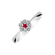 Tento prsten z 14kt bílého zlata zdobí krásné diamanty a rubín. Je dokonalým doplňkem pro každou osobnost s vkusem. Jeho jedinečný design a nádherný rubín dodávají šperku zářivou eleganci. Bude skvělým doplňkem vašeho outfitu a přinese vám spoustu komplimentů. Šperk je součástí kolekce Mirage.